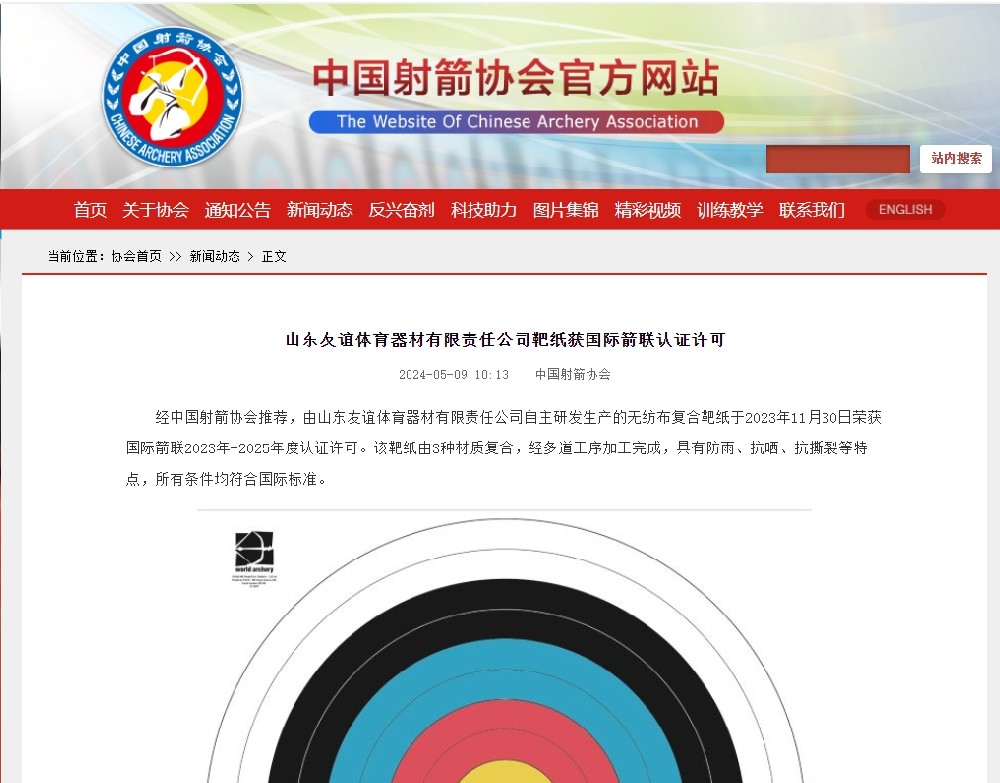 國際射箭聯合會-白金合作伙伴、國際射箭聯合會認證器材、中國射箭協會審定器材